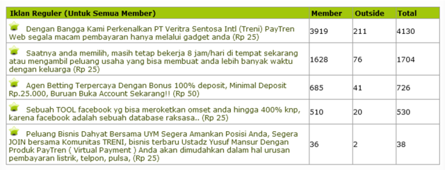 » 50 referral Anda klik 10 iklan per hari @Rp100 X 50% = Rp 25.000,-