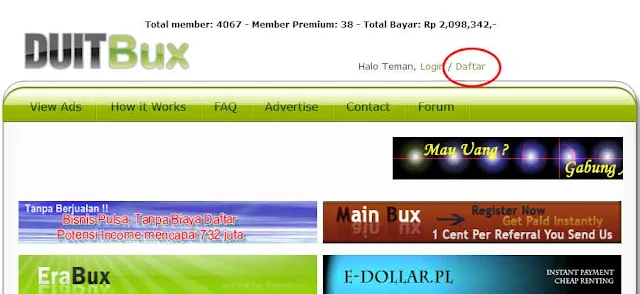 - Buka situs DuitBux http://duitbux.com/ atau klik gambar di bawah ini: